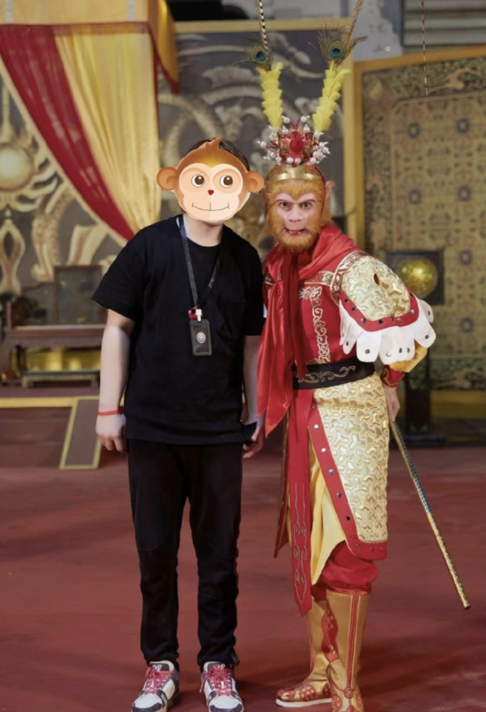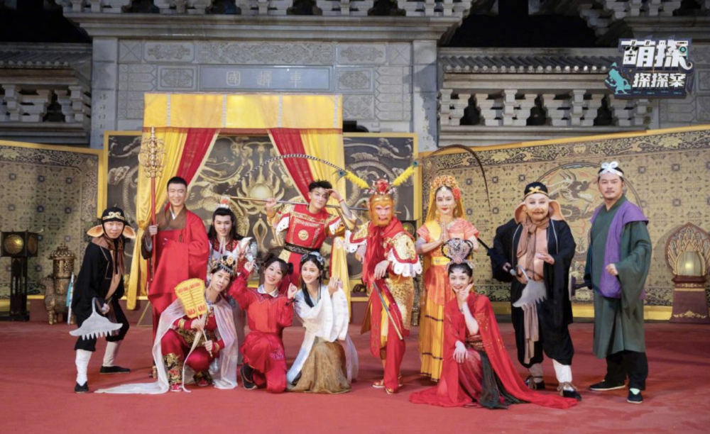 大合照中每个演员的扮相都可圈可点,美猴王站在中间闪闪发光。