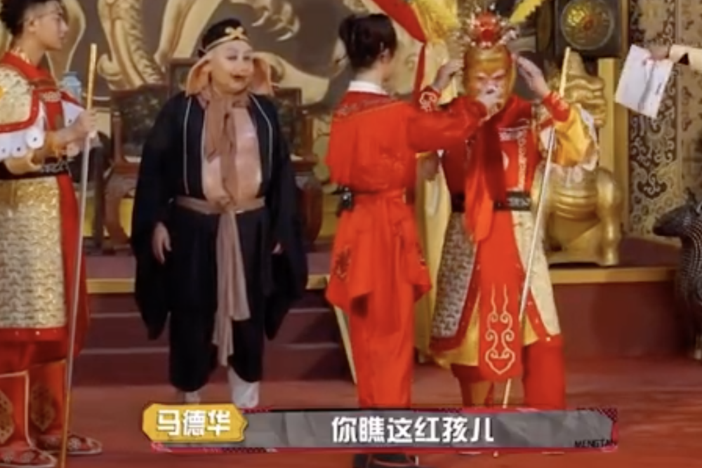 向来机灵的杨紫突然从身上掏出一个镜子,问六小龄童是否需要,马德华在旁边幽默地称:你瞧这红孩儿,你是猴子搬来的救兵吧?
