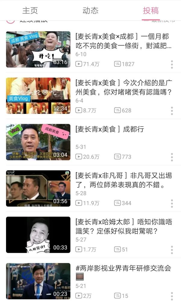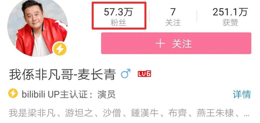 如今的麦长青冲劲不减,除了本职工作演员外,他还有另外一个身份--拥有57.3万粉丝的B站UP主。