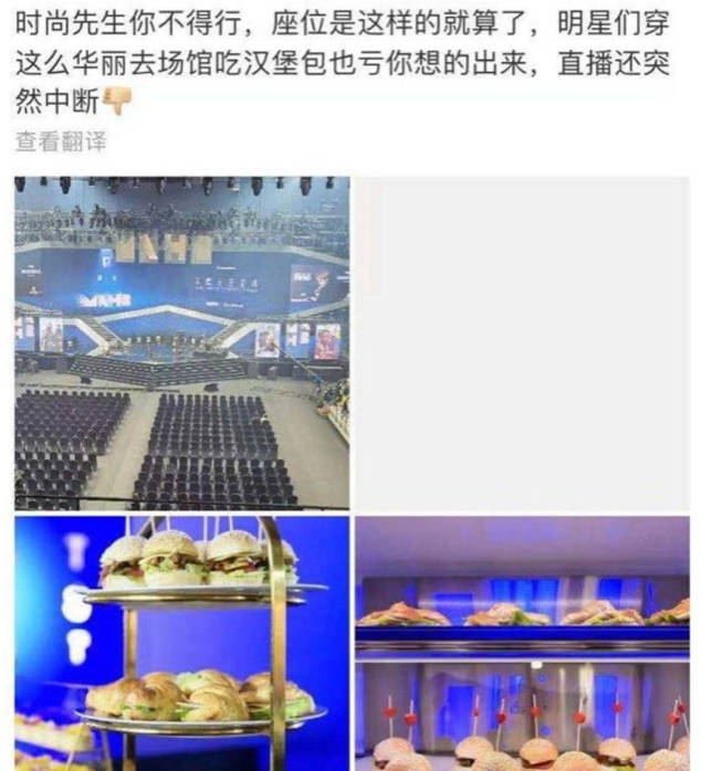 之前有时尚活动,在华丽高级的场馆里,主办方准备了一堆汉堡供明星享用。