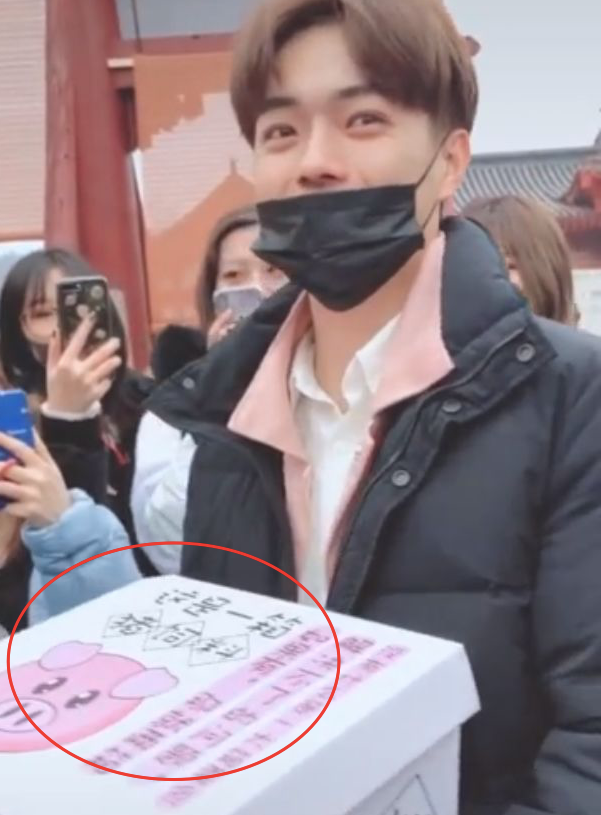 还有粉丝去探班,给许凯送了一箱子猪饲料。