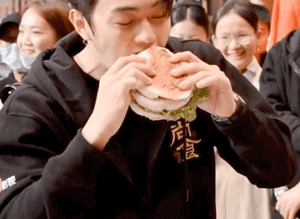 吴谨言送给他了个汉堡,他还嫌弃馍多肉少。