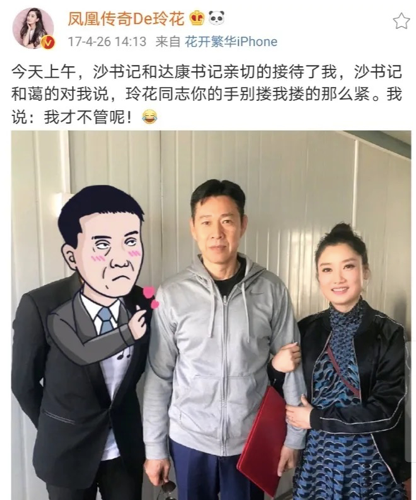 俩人跟张丰毅合影,玲花反手就把他给P掉了,他也只能留下一句毫无杀伤力的: 扎心了,老铁。