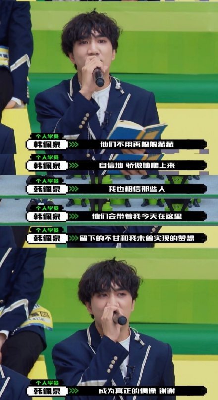 韩佩泉在《创造营2021》第二次顺位发布后的淘汰感言,曾打动了许多人
