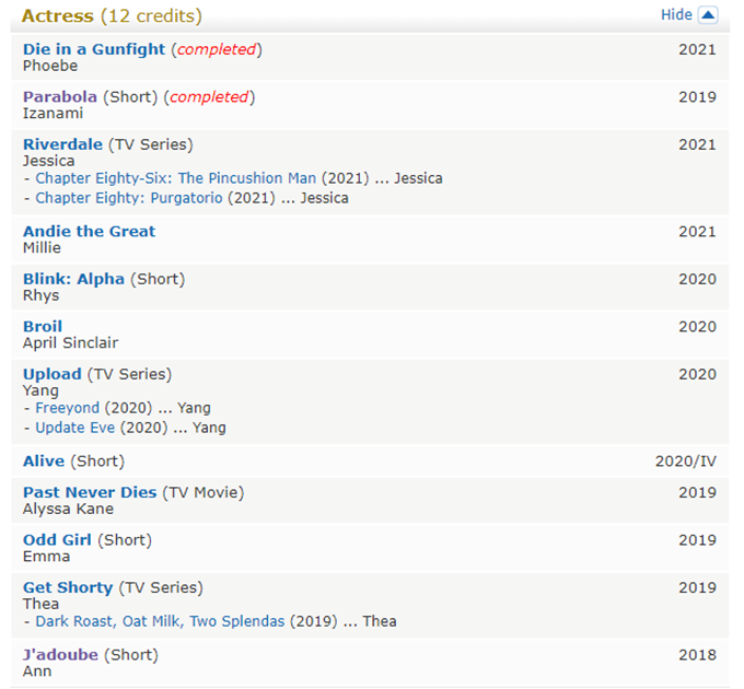 不过,这些影视剧大部分都没什么水花,以至于很多人都不知道她出道了。