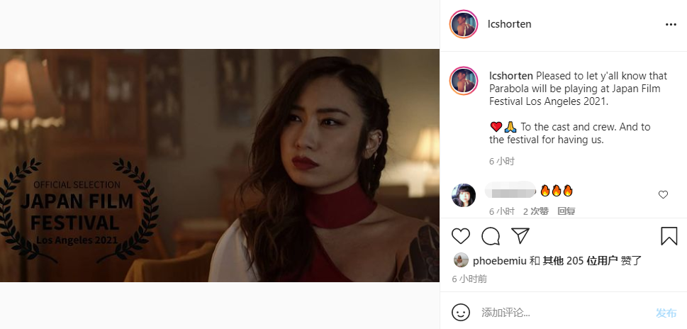 那就是她主演的电影《Parabola》要登上某电影节了,网友们纷纷留言恭喜。
