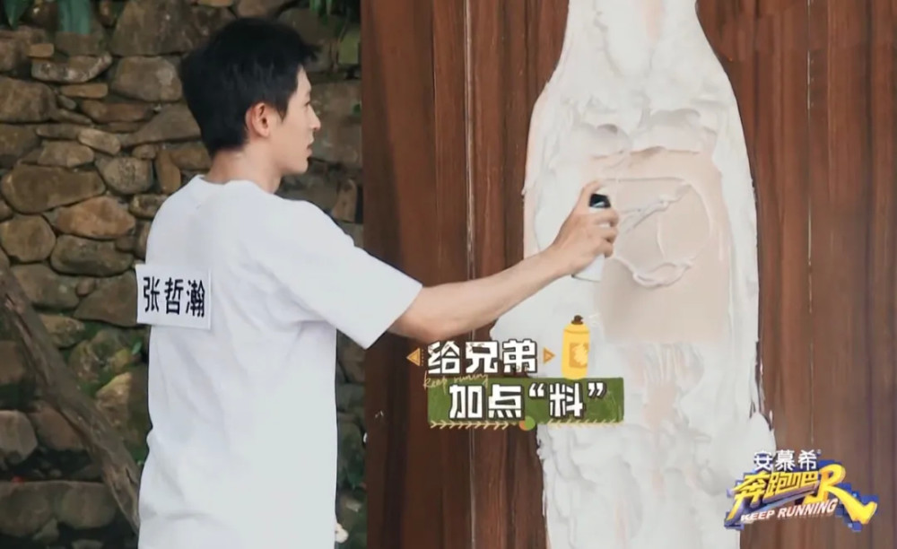 镜头切到张哲瀚,他还在两只手疯狂地补泡沫。