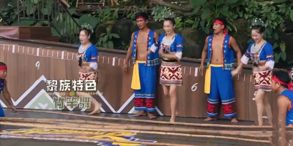 泡沫墙的游戏开场前,节目组安排了黎族特色——竹竿舞。蔡徐坤、宋雨琦、张哲瀚纷纷加入了竹竿舞表演中,与嘉宾们一起跳了起来。