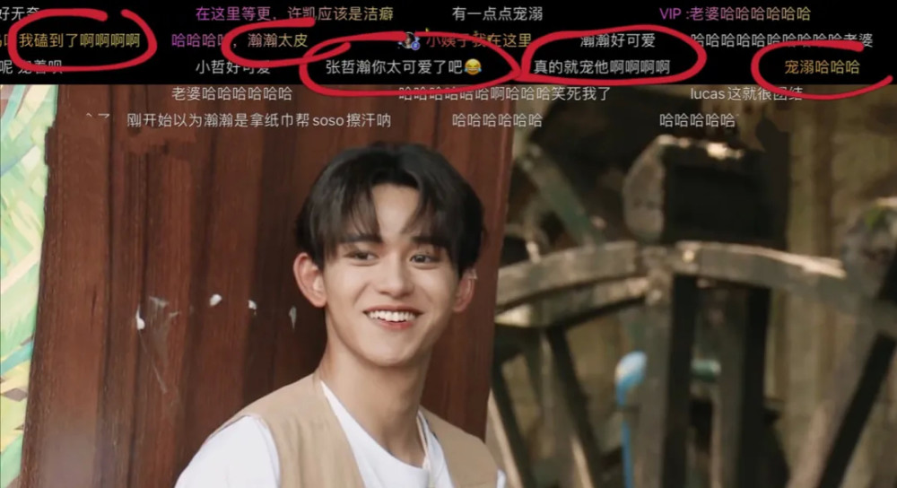 弹幕中,网友都说张哲瀚好可爱。