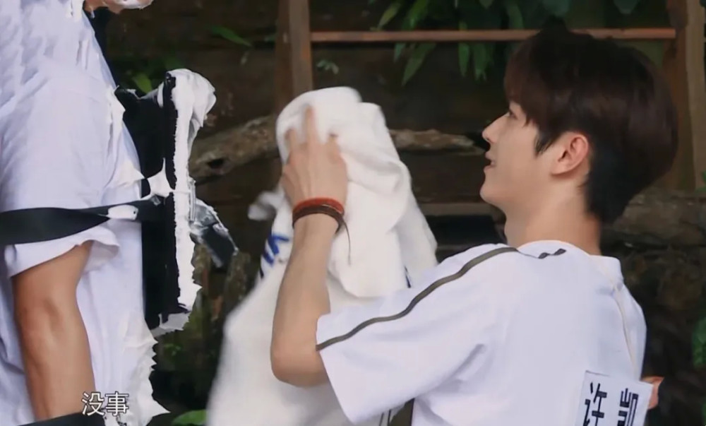 大家都还在笑的时候,“以德报怨”的许凯贴心地拿着毛巾,上前帮张哲瀚擦脸。
