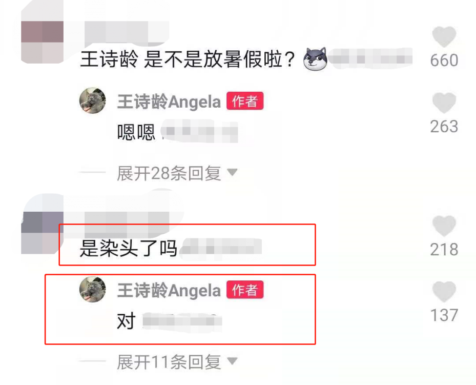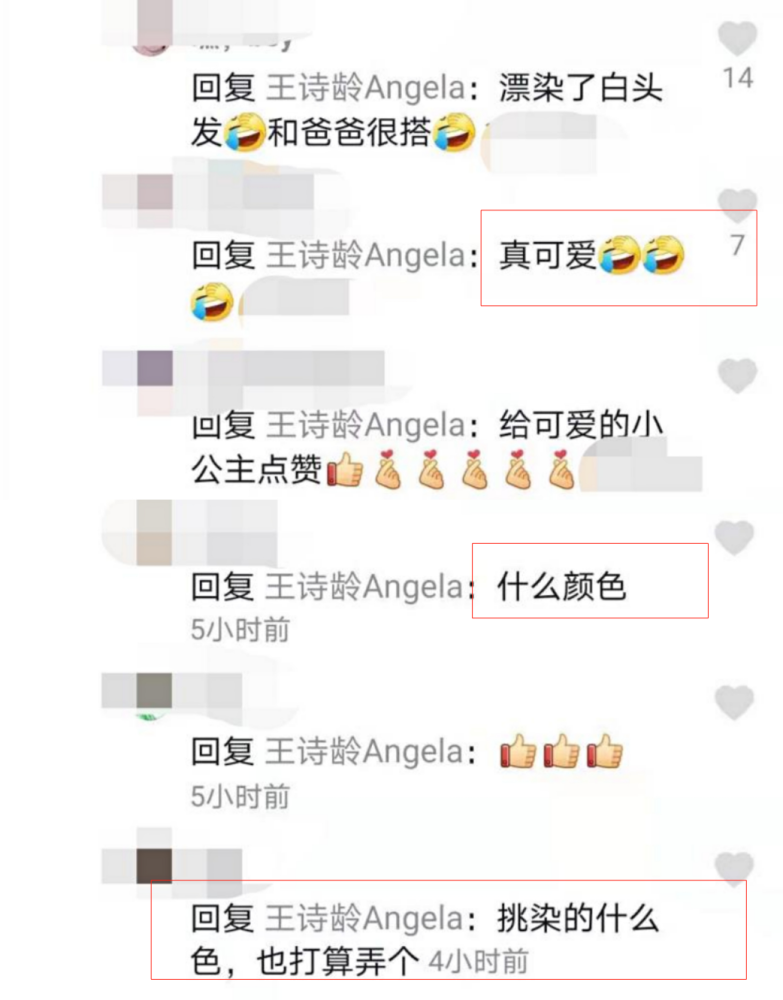 眼尖的网友也发现了这一点,直接在留言区问王诗龄是不是染头发了。王诗龄也大方回答道:“对。”看来她并不在意网友发现她挑染过的头。