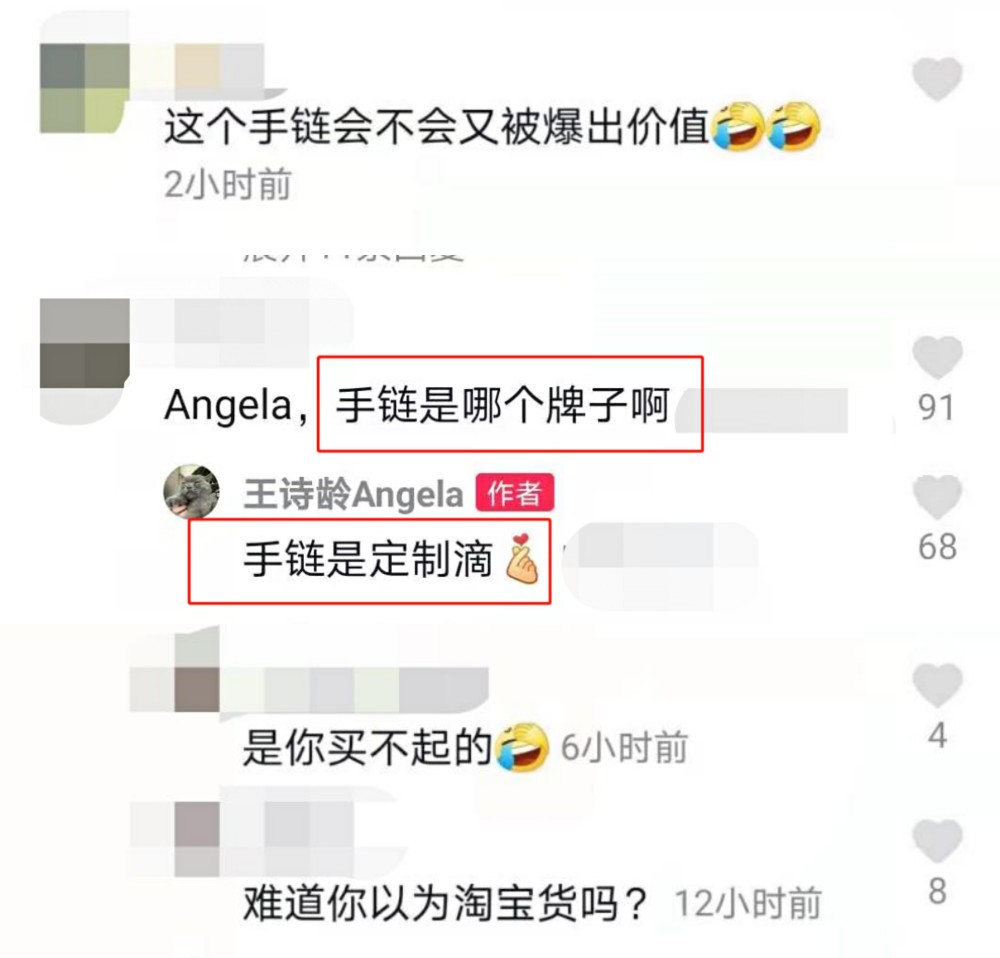 网友调侃道这条手链会不会被曝出价值。毕竟李湘对女儿的富养程度大家还是知道的。有网友耐不住好奇心直接问王诗龄手链牌子,王诗龄回复说是:“定制的。