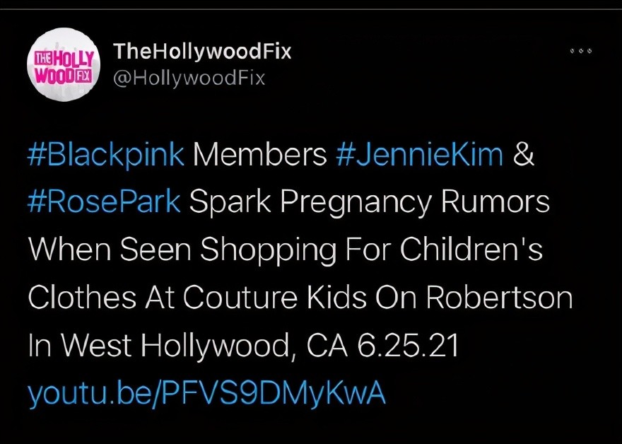 不过更令韩国网友们震惊的是,美国媒体The Hollywood Fix在该视频上使用的标题是:BLACKPINK在Couture Kids买童装,引发怀孕传闻!