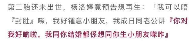 但杨洛婷一直都很喜欢小孩,甚至在第二胎还未出世前就表示:还可能会继续生第三胎。