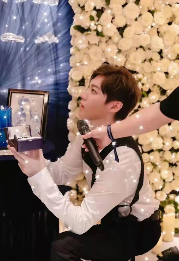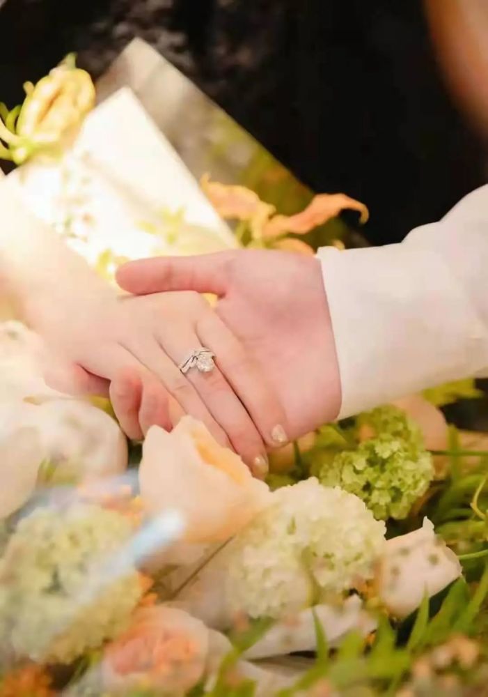 男帅女美,再加上梦幻的场景衬托下,似乎每一个角落都展现着“幸福与浪漫”。在这样美丽的环境氛围下,男友单膝跪地拿出早前准备好的鸽子蛋大钻戒,仪式感十足地跪在地上请求球球嫁给自己。