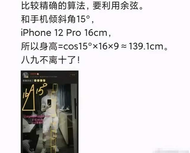 甚至还有网友用上三角函数中的余弦定理,将各个数据套入公式,得到的最后的精确身高为“139.1cm”。