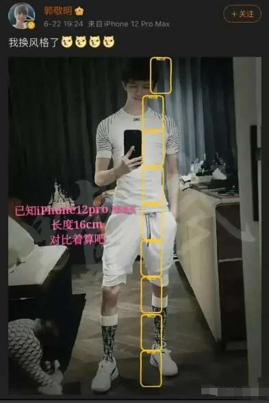 郭敬明晒出的是一张全身照,于是引来不少数学爱好者对他身高的计算。