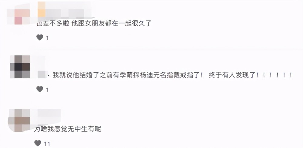 网友们纷纷在评论区里留言表示,杨迪也差不多是时候结婚了,而且他之前录制萌探的时候无名指有戴戒指,但也有人质疑爆料的真实性,感觉是无中生有。