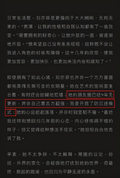 不过,刘亦菲说过不更新朋友圈,但是看到别人发的朋友圈也会点赞,就是自己不怎么玩这些。