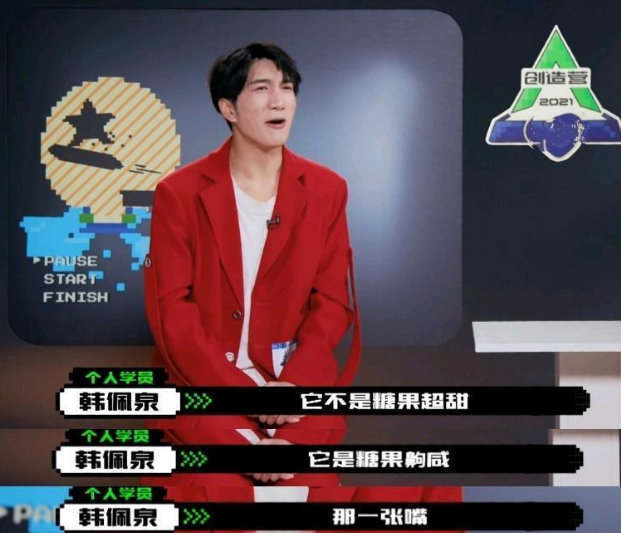 与此同时,学员韩佩泉也靠着自己的“嘴”成功出圈,面对“糖果超甜”组合的表演,他直接吐槽“那不是糖果超甜,那是糖果齁咸”、“可爱的让我心慌”。