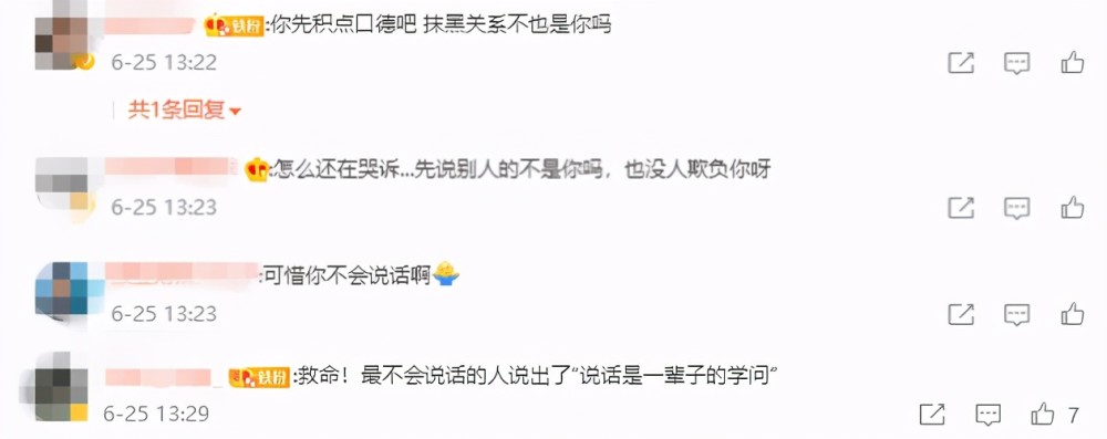 果不其然,评论区的网友也没给他留面子,直言“先说别人的不是你吗,也没人欺负你”、“可惜你不会说话”,还有的表示“救命!最不会说话的人说出了‘说话是一辈子的学问’”。
