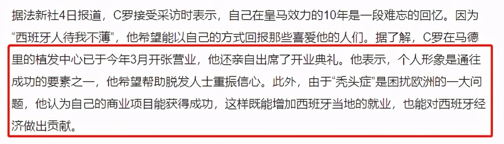 有意思的是,除了高大上的产业外,C罗还致力于毛发医疗领域。