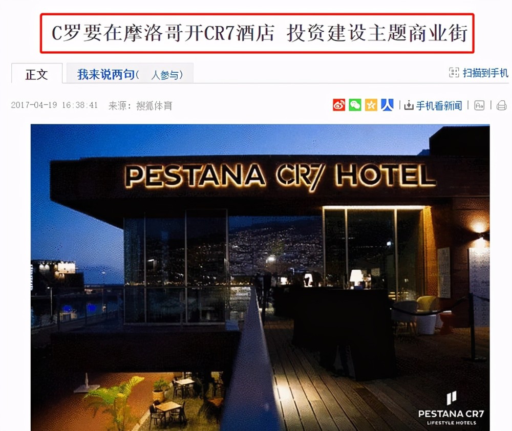 除此之外,C罗还在2016年以1.4亿欧元买下摩纳哥一个五星级酒店,让他成为了CR7的一部分。