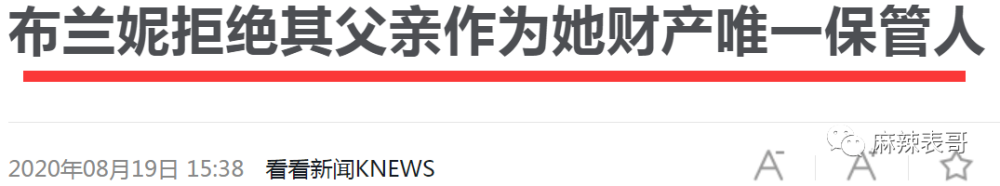 她和父亲的案子并非是经济案或者其他,而是布兰妮申请撤销父亲对她的监护权。