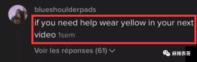 有一个粉丝留言:如果你需要求助,下一条视频就穿黄色衣服。