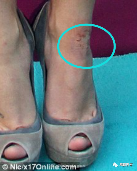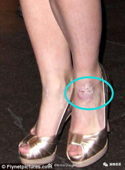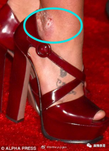 当时媒体一度拍到布兰妮脚上受伤的奇怪照片。