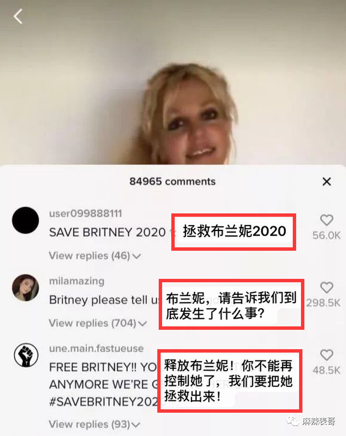 但目的不一样,2007年,布兰妮精神失控,人们想拯救她,2020年,布兰妮被父亲控制,人们想救她出来。
