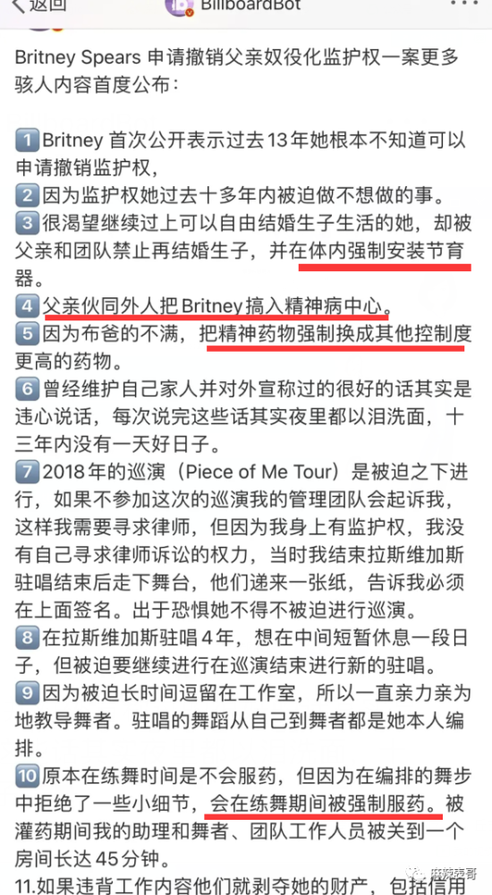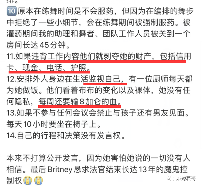 总结起来,就是操控布兰妮,在她不听话时虐待她,迫使成为赚钱工具。