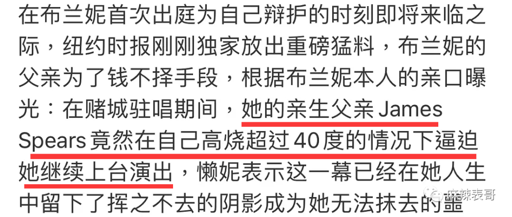 布兰妮说,她的父亲强迫她在高烧40度的情况下演出。
