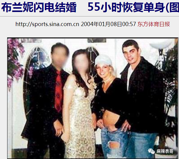2004年,24岁的布兰妮与童年好友贾森·亚历山大在拉斯维加斯结婚。连婚礼都没有的疯狂婚姻,只维持了55个小时。