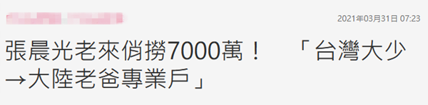 而且据台媒今年3月份的报道,因为《流金岁月》的大火,开通短视频账号的张晨光在平台拥有近200万粉丝,增加的曝光度还让他获得不少广告商的青睐。他今年第一季度接下的广告已经进账7000万新台币(约合人民币1625.4万元),数量相当可观。