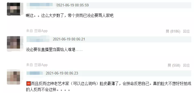 把一个私德没啥毛病也有作品持续输出的老戏骨逼到当场痛哭,这种疑似指责的行为到底对不对?关于这个问题,网上也分为两种态度。