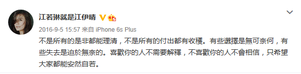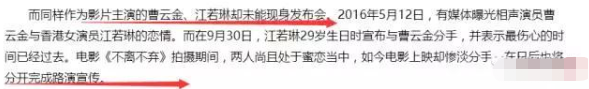 9月初的时候江若琳还在为男友声援,9月底就已经在感谢相遇和离别了。连后来到了电影宣传期的时候,他俩都再也没有同框出现过。