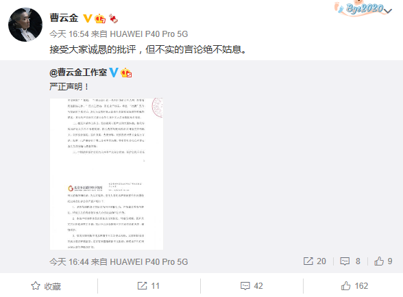 看到曹云金还为这回拽女生的事发了个严正声明,表示对不实信息绝不姑息。