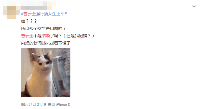 刚看到这儿的时候不少吃瓜网友都忍不住发出了同款疑惑:印象中曹云金不是都结婚了吗?那这是…出轨“又”被拍到了?