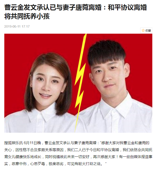但其实,曹云金2019年就已经离婚了,在这个瓜出来之前他算是单身状态。