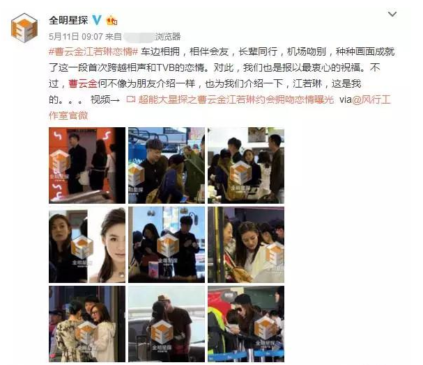 她还配了九张和曹云金的自拍合影,看起来也是交往了有一段时间的样子了。