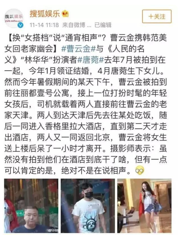光是唐菀刚生完孩子的时候,曹云金就被拍到和一个短发女生吃饭,5月份还和另一个白衣女生同回老家。