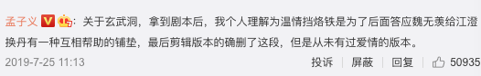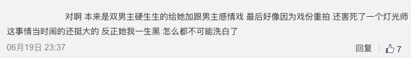 比如上面的这个剧组花絮,她承认剪辑版本里确实删了这段,但这是对后续情节的铺垫,也并不代表跟男主之间有爱情线。