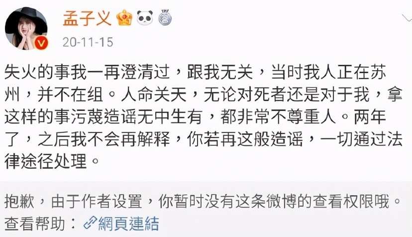 至于剧组的事故,孟子义表示自己当时甚至不在组,跟整件事完全无关。