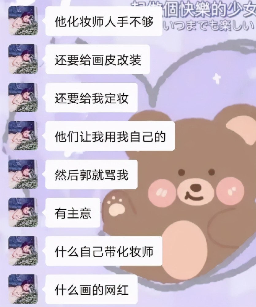 郭敬明问她,你为什么要用自己的妆发团队,具体妆容又为什么跟一开始的有出入?