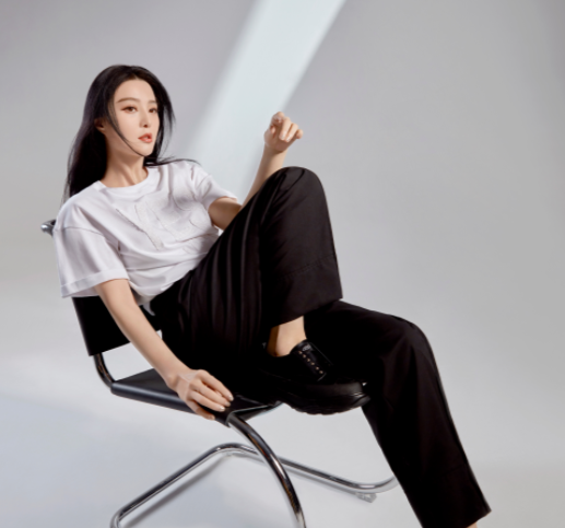她穿着简单的白色T恤搭配黑色长裤,清水出芙蓉气质出众,酷帅的劲仿佛还是当初那个范爷。