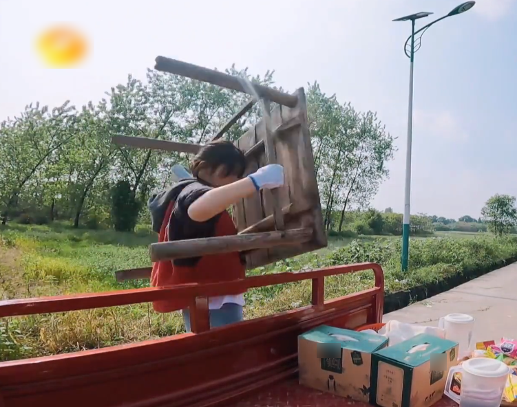 有关注节目的观众应该都可以看到,张子枫在跟黄磊拉了一车东西去给种树的小伙伴准备后勤的时候,张子枫可是连着搬了两次凳子。