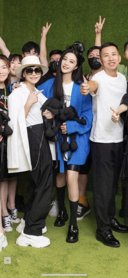 范冰冰与工作小伙伴合影,C位出镜女王气场十足,女明星的光芒格外耀眼。