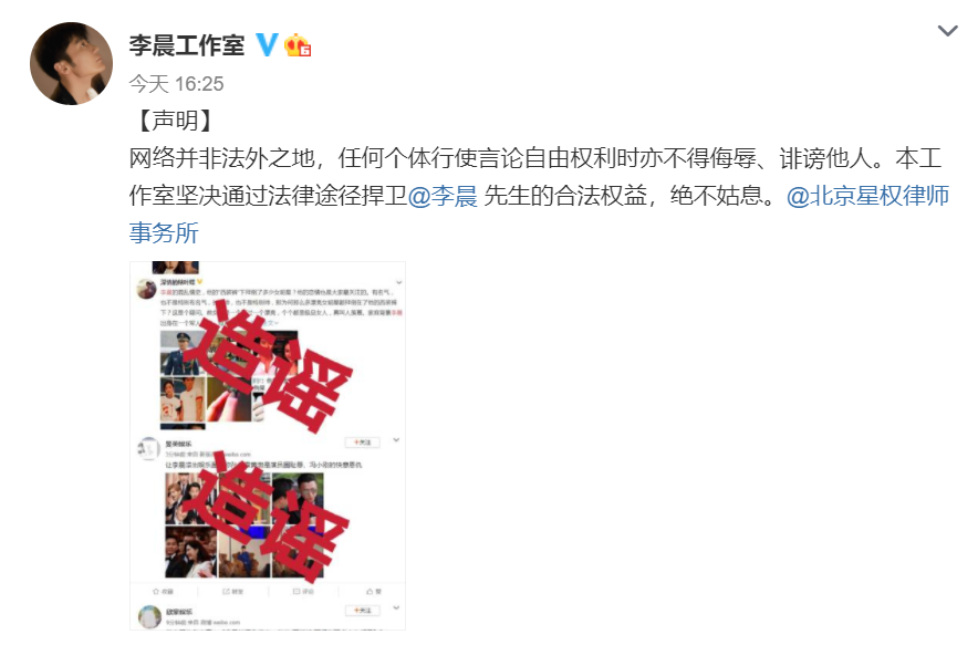 近日,范冰冰的前男友李晨被多个有网友diss“混乱情史”相关的传闻,随后,李晨工作室发声明称是造谣,并表示“工作室坚决通过法律途径捍卫李晨先生的合法权益,绝不姑息”。关于李晨情史的传闻,李晨工作室早就维权澄清了,现在依然还有网友在造谣,李晨团队只能起诉维权。