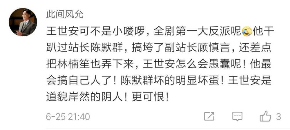 从一开始,王世安这个角色,观众一直觉得他是个“小人物”,但是实际上,他害死了顾慎言,逼死了陈默群,又开始追捕林楠笙。